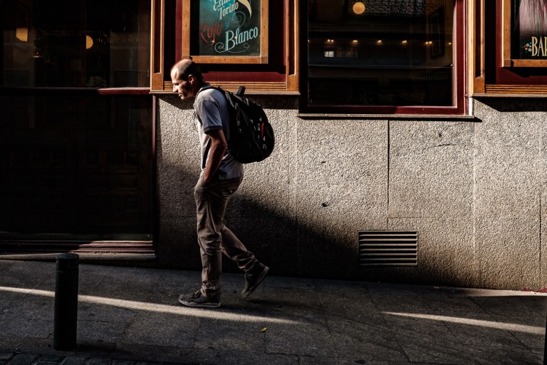 La Luz dura del día te da la posibilidad de interpretar la calle de una forma diferente. Las sombras negras por el exceso de luz nos permitieron jugar con composiciones interesantes y una cierta tensión dramática que nunca viene mal en nuestras fotografías.