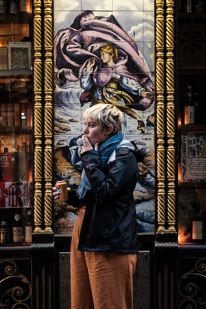 Lo mejor llegó cuando las luces de la ciudad comenzaron a ganarle al sol que ya se estaba poniendo. En la noche madrileña nunca falta vida, e incluso en ciertas calles y plazas, resultaba complicado disparar con tanta gente pasando alrededor, pero fue muy interesante buscar un ambiente y una luz distinta en un Madrid efervescente.