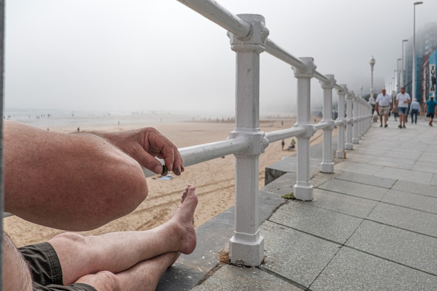 El domingo lo comenzamos con sol pero poco a poco la bruma del mar comenzó a llegar a la playa de Gijón y nos regaló un momento inigualable para encontrar una atmósfera totalmente distinta y que dejó que consiguiéramos fotos con mucha potencia visual. Estos momentos diferentes son los que nos ofrecen fotografías con mayor interés.
