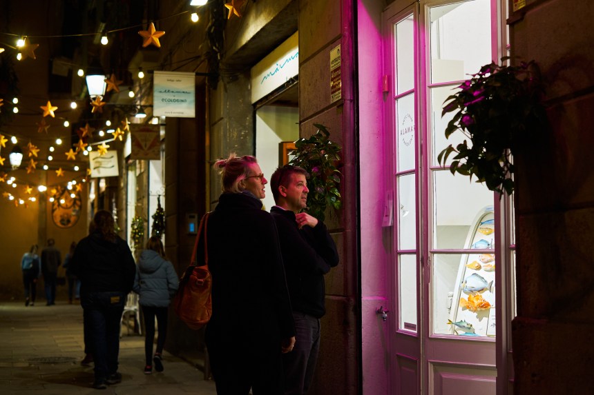 La noche es totalmente diferente y nos ofrece un mundo de posibilidades creativas, en ocasiones incluso más que por el día. Las calles de los barrios céntricos de Barcelona se tiñen de luz y color, y la vida en ellas hace que fotografiar se conviertan en toda una diversión. El grupo aprendió a entender la luz, a saber componer en situaciones incontrolables y complicadas, y todos nos llevamos fotografías interesantes. Aquí comparto algunas de las mías tomadas íntegramente con mi inseparable Fujifilm X-T2 y el Fujinon XF35mm f1.4.