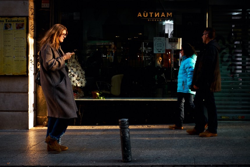 Tras un primer encuentro alrededor de una taza de café caliente, comenzamos nuestra andadura por diversas calles y barrios céntricos practicando técnicas y comprobando como cambia la historia cuando vas pasando por distintos momentos de luz. Este es siempre uno de mis objetivos primordiales, que el grupo entienda bien la luz y cómo usarla en nuestro beneficio. No es buena idea disparar tu foto sin pensar en ella, obnubilado por un sujeto interesante o una composición bonita. Si no tienes en cuenta tu principal herramienta como fotógrafo siempre vas a notas que les falta algo a tus fotografías.