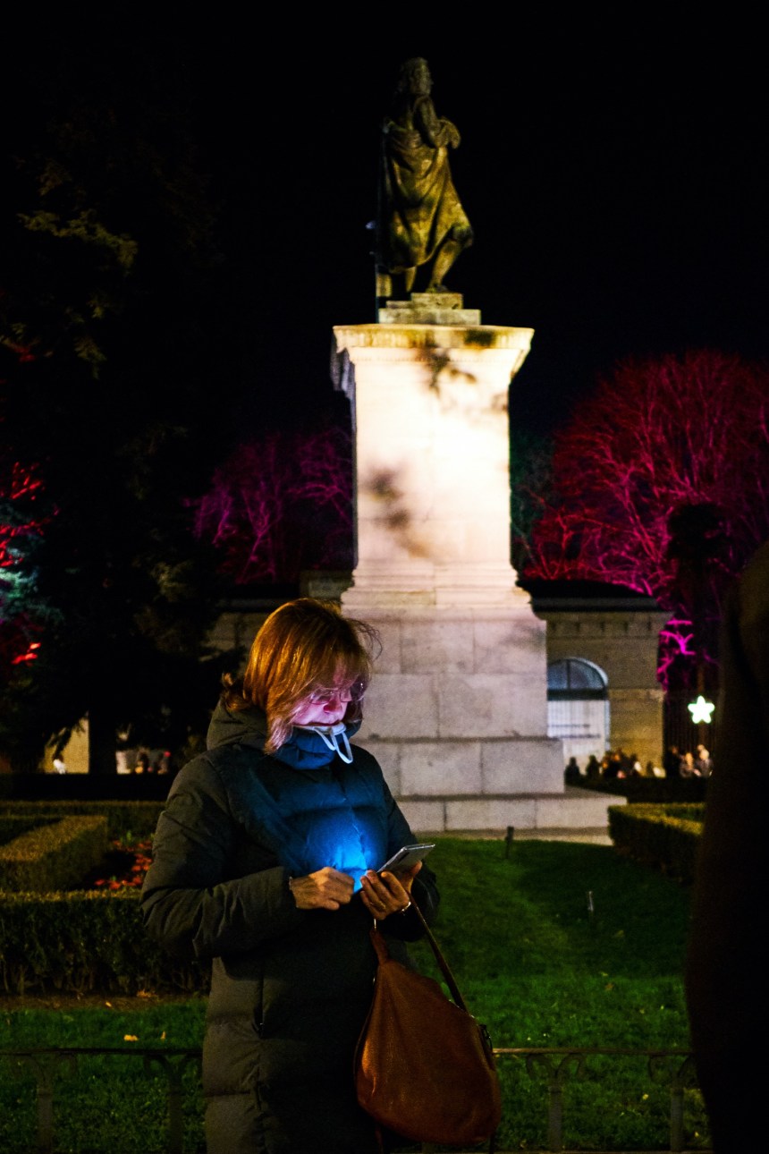 Lo bonito del invierno es que se hace de noche a media tarde, y tras hacer un ejercicio de revelado con algunas de las fotos de los asistentes, proseguimos nuestra andadura a través de las calles iluminadas por la luz artificial de la ciudad. La noche había hecho presencia y nos dio la posibilidad de trabajar con ella, algo muy excitante y diferente para varios de los asistentes al taller del pasado fin de semana.