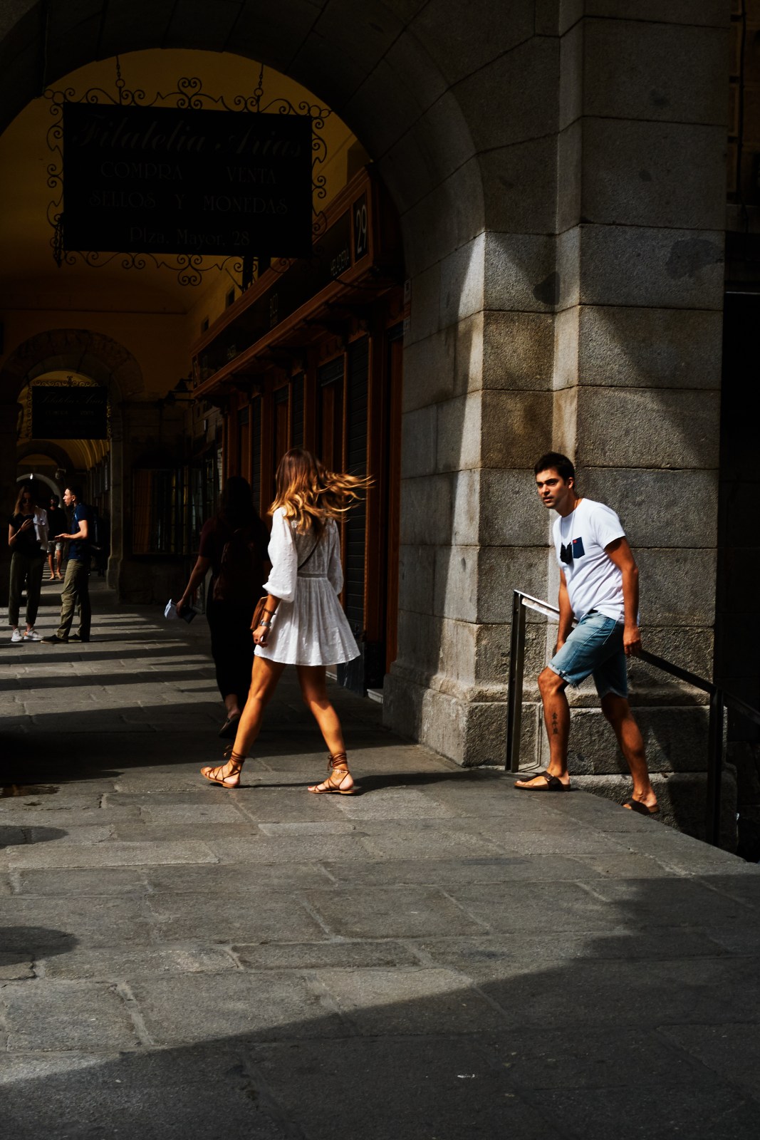 Pronto dejamos las grandes avenidas para adentrarnos en las grandes plazas de Madrid, allí aprendimos a trabajar en espacios tan abiertos buscando siempre «hitos» sobre los que pivotar. A partir de ahí comenzó el callejeo por los rincones más interesantes del centro de Madrid.