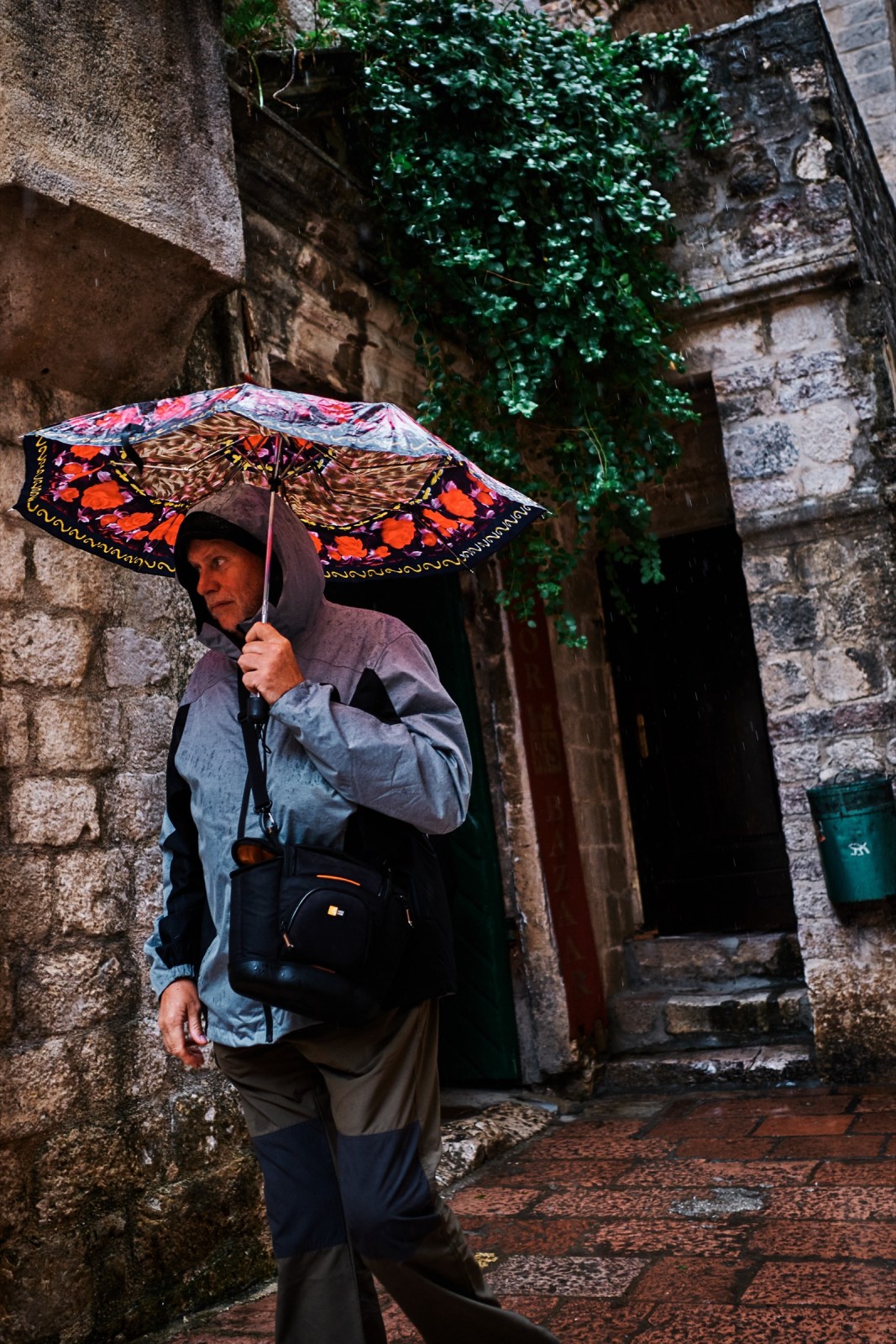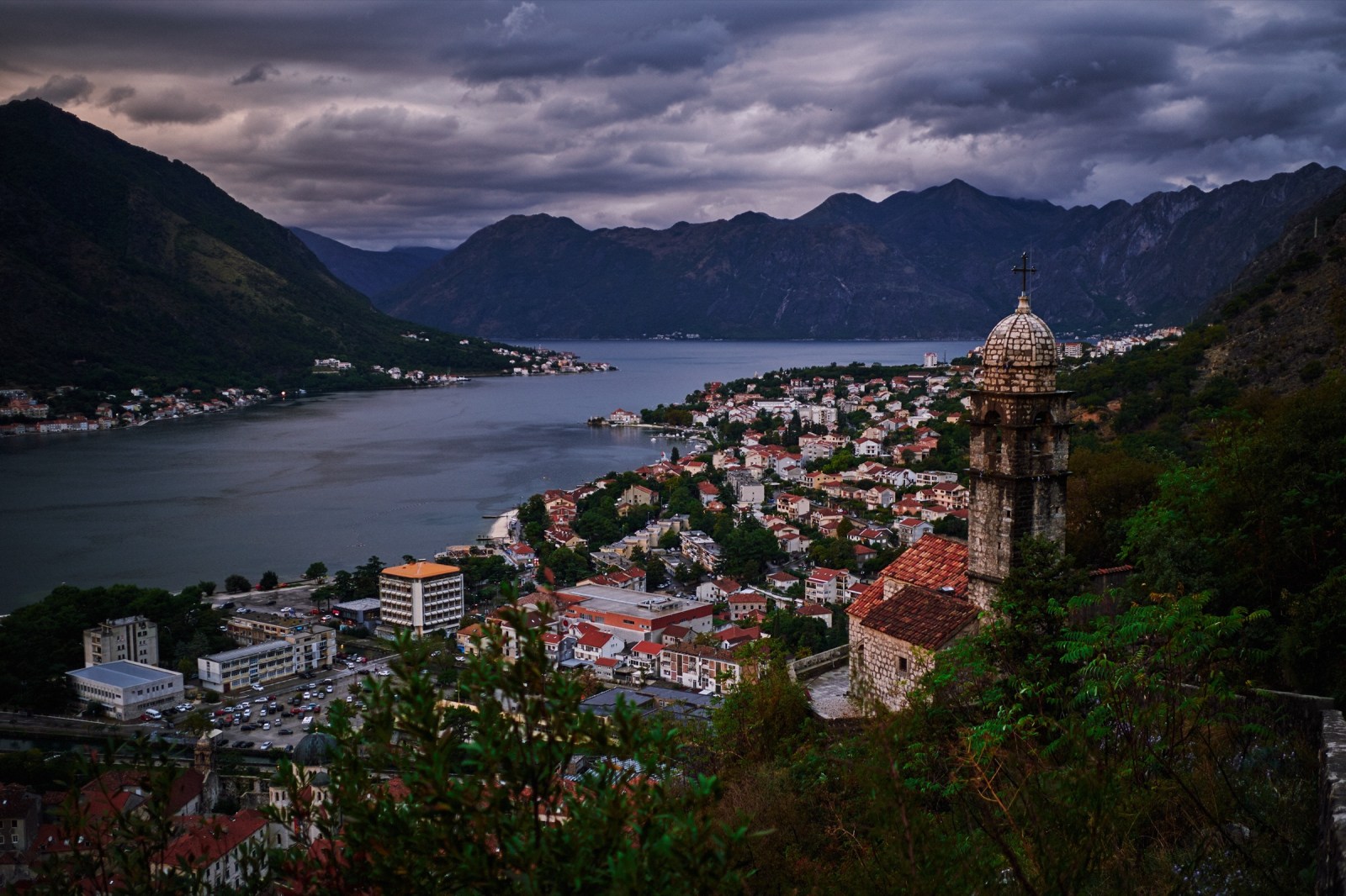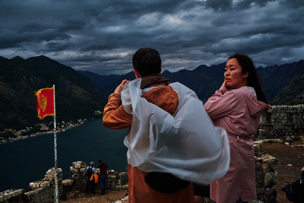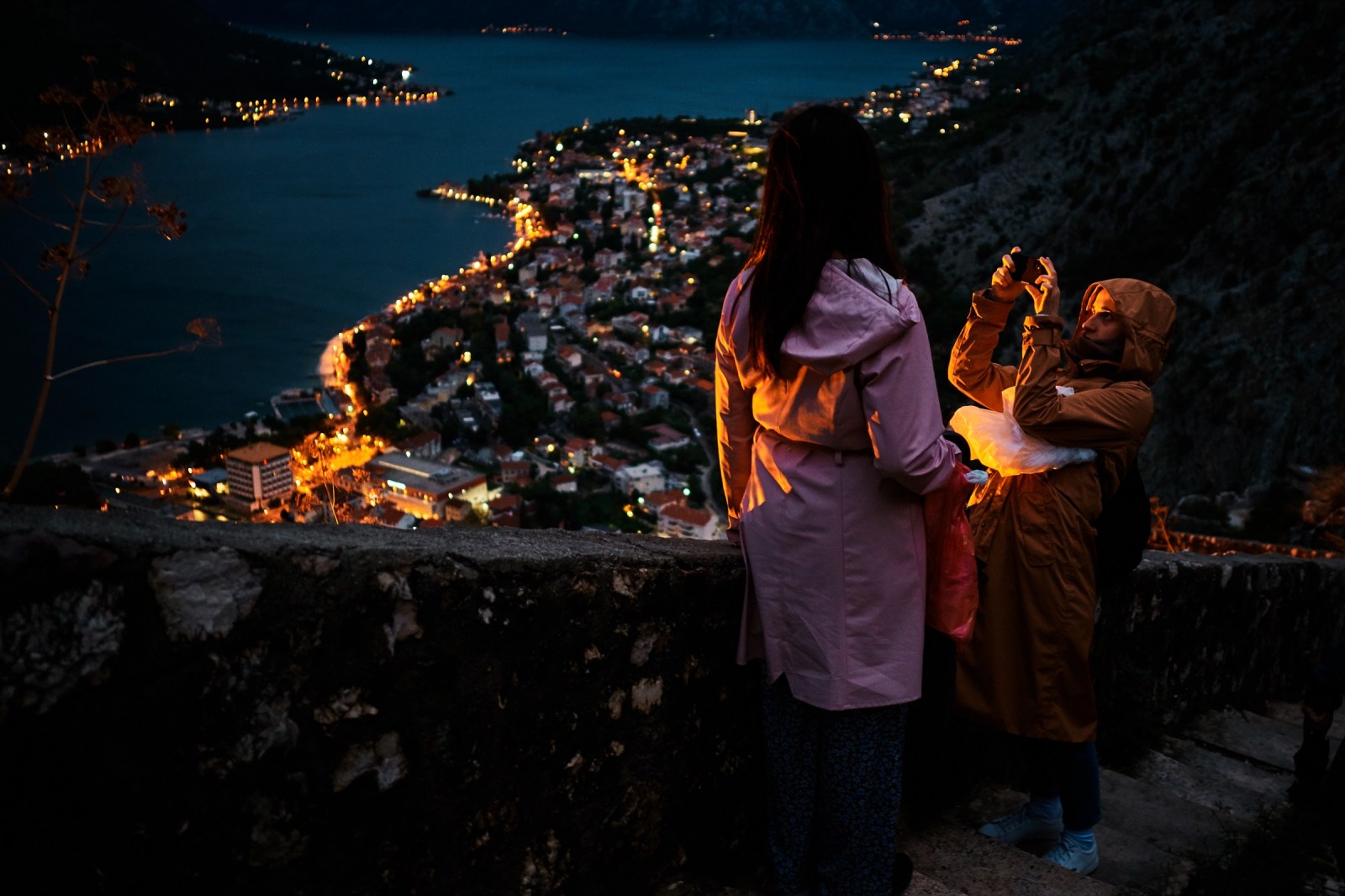 De allí nos dirigimos a la ciudad de Kotor, un lugar alucinante para perderse con la cámara, aunque ese día venía bien llevar un paraguas en la otra. Ana, una guía local, nos explicó la historia de la ciudad y algunas divertidas particularidades de los montenegrinos. Tras hacer el checkin en el hotel, varios del grupo decidimos acometer la «escalada» al castillo de San Giovanni, un punto en alto que nos daría una perspectiva única de la bahía. Pese a que el tiempo no acompañaba y el camino se nos hizo algo duro, las vistas merecieron la pena sin ninguna duda. Se nos hizo de noche y tras un descenso con la linterna del móvil en la mano, nos tomamos unas cervezas para celebrar la hazaña y el cumpleaños de Pablo, uno de los miembros del grupo que cumplía años ese día.