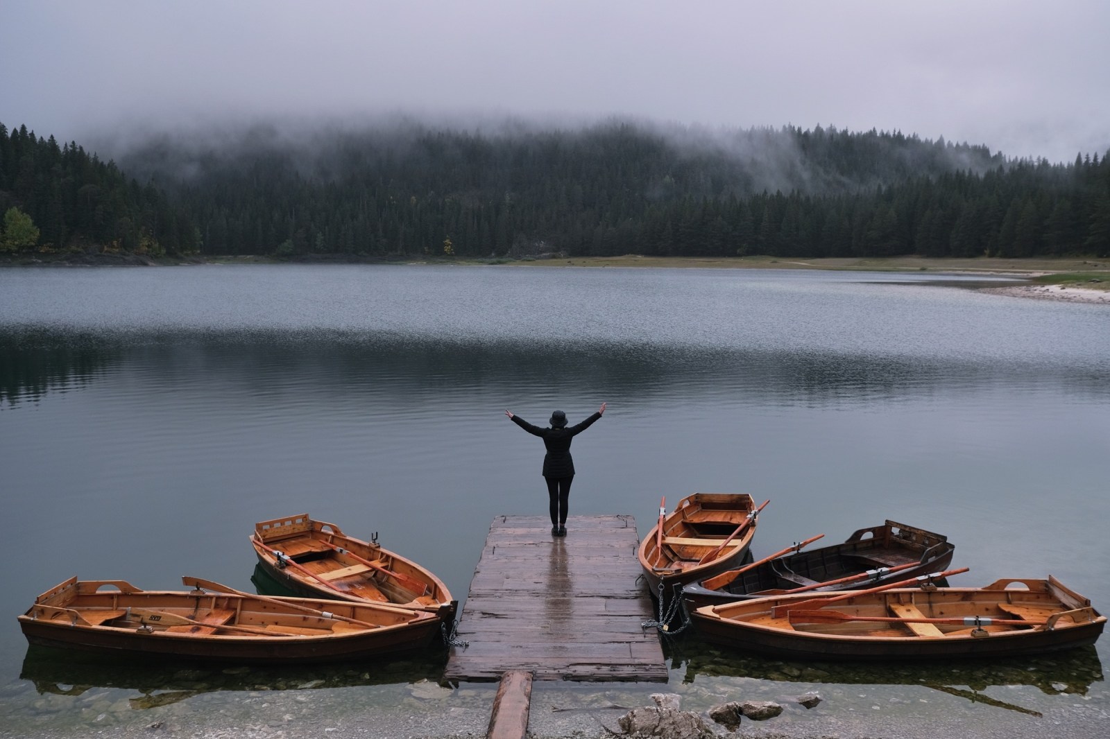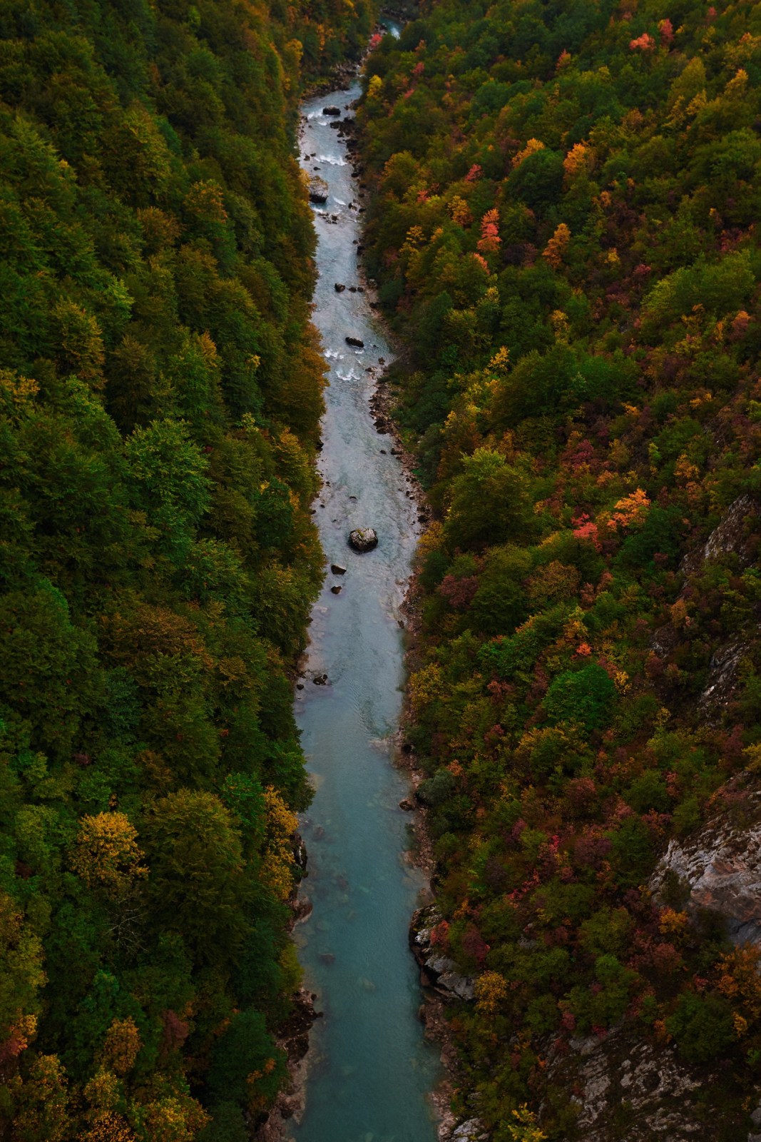 El siguiente día nos dirigimos al parque natural de Durmitor a través de carreteras sinuosas de pura montaña en donde los aficionados al ciclismo seguro disfrutan de subidas empinadas y bajadas vertiginosas. Queríamos ver y fotografiar el Lago Negro. Tras hacer alguna parada estratégica para fotografiar estos parajes tan fantásticos y tan otoñales, llegamos al lago. Esperábamos nieve y solo tuvimos niebla. Pero no la echamos de menos, porque el frío era más que intenso. Tras pasear por las orillas y fotografiar tanto como pudimos, terminamos la excursión tomándonos un chocolate caliente en un restaurante de la zona. Tras pasar la noche en Zabljak, un hotel de alta montaña en donde se notaba que estaban preparados para las nevadas intensas, proseguimos nuestro camino por curvas de herradura, por bosques rojizos y montañas preciosas.