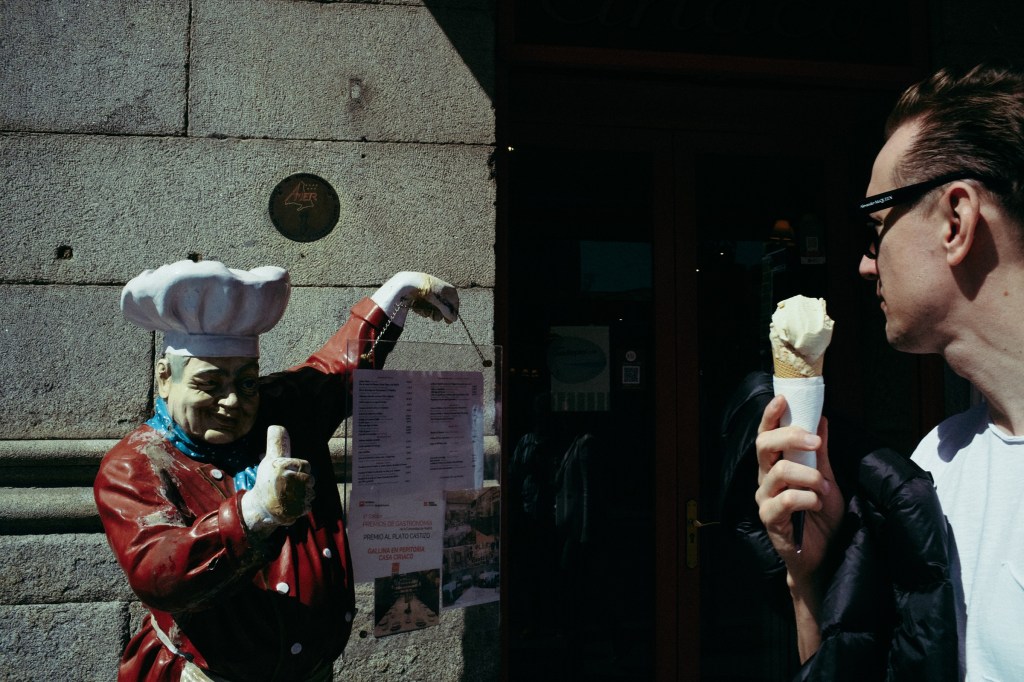Madrid es un lugar que siempre me ha acogido de manera excepcional durante mis Talleres de Inmersión en Fotografía de Calle. Esto se debe, en primer lugar, a las múltiples opciones que la ciudad ofrece en prácticamente cualquier zona del centro, brindándome una gran variedad de escenarios para capturar con mi cámara. Además, la diversidad de personas que uno se encuentra a cada paso que da en Madrid es realmente fascinante, con individuos de distintas procedencias y características que enriquecen la experiencia fotográfica en la ciudad.