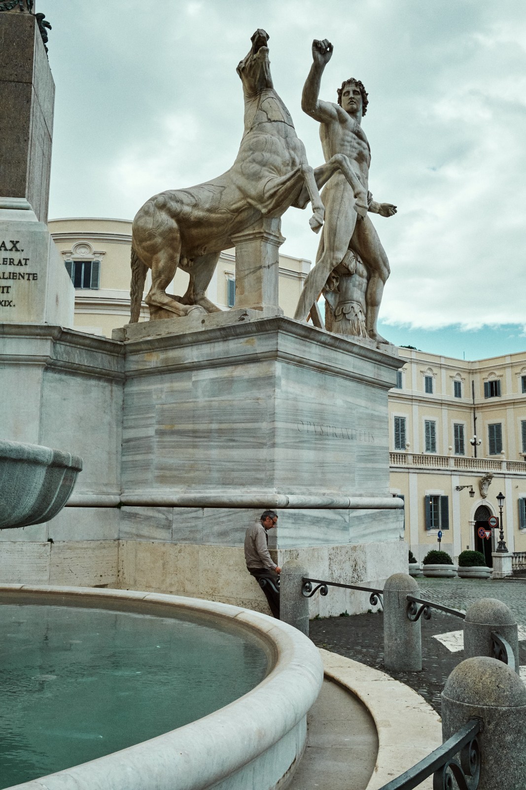 Estos talleres se desarrollan de jueves a domingo, por lo que dividimos la ciudad en secciones para fotografiar. El jueves, partimos desde la zona de la Estación de Termini hacia la Plaza de la República, continuando hacia la Plaza del Quirinale. Allí nos encontramos con la plaza de las cuatro fuentes, un espectáculo impresionante que se vio un poco ensombrecido por el intenso caos de coches y personas que caracteriza a Roma. Sin embargo, el disfrute de la belleza en cada rincón siempre es un estímulo. Desde allí nos dirigimos al Mercado de Trajano, tras pasar por la Plaza Venecia y adentrarnos en el imponente edificio de Víctor Manuel II.