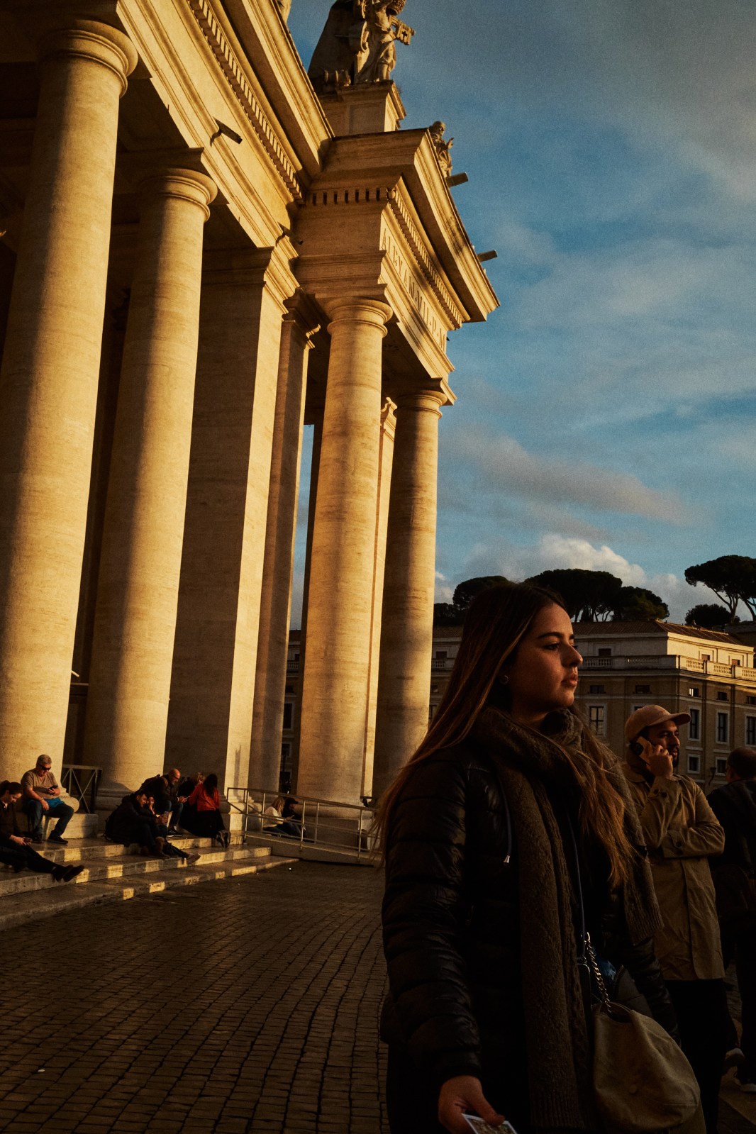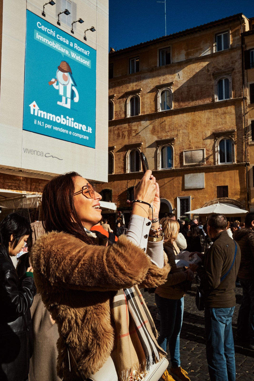 Tras este agotador viernes, el sábado preparé un recorrido más relajado pero igualmente interesante. Partimos desde la Fontana di Trevi hacia el Templo de Adriano y el Panteón. Para mí, este último fue uno de los puntos más fascinantes, ya que la plaza me encantó, el lugar me cautivó y el sol radiante nos facilitó la captura de un montón de fotos interesantes. Además, tuve la oportunidad de saludar al fotógrafo italiano Eolio Perfido, quien también estaba realizando un taller con un grupo de fotógrafos italianos en la zona.